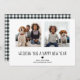 Cette carte de vacances simple et élégante en noir et blanc dit "Je vous souhaite une bonne année", avec deux de vos photos personnelles préférées et un coeur joli assorti. Le dos de la carte est orné d'un motif rustique noir en vichy.