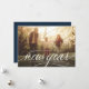 Un élégant traitement de type "je vous souhaite une bonne nouvelle année" en blanc se trouve au-dessus d'une seule photo horizontale dans ce design carte photo classique du Nouvel An. Une excellente façon d'envoyer des encouragements tardifs de vacances à des amis et à la famille, cette carte est également idéal pour garder la joie de passer dans la nouvelle année. Célébrez 2022 avec cette carte simple et élégante avec un fond bleu marine festif.