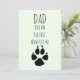 Bonne Fête des pères du chien. Papa, tu es le meilleur, maintenant nourris-moi ! Carte de typographie avec empreinte de patte. Whimsical et mignon. Ajoutez le nom de votre chien à l'arrière.