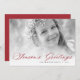 Elégant et simple carte photo de vacances dispose de votre photo horizontale ou paysagère préférée en fond saigné, avec des "Bonnes Fêtes" superposées dans le script de calligraphie rouge classique en lettrage. Personnalisez l'avant de la carte avec vos noms ou un court message de vacances, et l'année. REMARQUE : Cette carte est conçue pour convertir vos photos en noir et blanc. Pour revenir à la couleur, sélectionnez "cliquer ici pour customiser plus loin" sous les modèles de texte et d'image, et retirez le filtre noir et blanc.