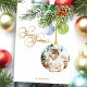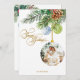 Cette carte amusante, festive et colorée présente une branche de pin à l'aquarelle avec des ornements de Noël, un texto "Bonnes Fêtes" d'or coulant avec d'élégants swashes (la couleur peut être customisée dans l'éditeur de design) et un modèle photo découpé unique en forme d'ornement avec champ de texte modifiable. L'arrière comporte un graphique floral complémentaire et des champs de texte supplémentaires.