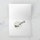 Carte de Noël de deux chiens Boston Terrier en traîneau avec Père Noël volant au-dessus de la tête.