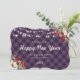 Cartes Pour Fêtes Annuelles Botanical Purple Plaid String Lights New Year Card