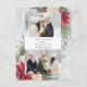 Ce design classique et traditionnel comprend deux modèles photo avec élément blanc central pour votre personnalisation sur un arrière - plan de poinsettias aquarelle, roses blanches et pin sur un arrière - plan gris brumeux.