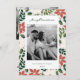 cartes de fin de année de photo vintage Classic à deux faces avec feuillage de Noël et motif floral avec photo de famille personnalisée et messages de vacances.