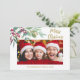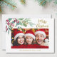 Cette carte de Noël est simple et élégante. Il comprend votre photo avec des plantes d'hiver aquarelle. L'accueil minimaliste dit "Joyeux Noël" dans la typographie stylisée en or. Aquarelle originale © Michele Davies.