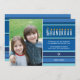 Une menorah est rendue par typographie sur cette carte de voeux plate rayée Hanoukka. Le mot "Happy" fait office de Shamash, tandis que les autres lettres "Hanoukka" servent de huit bougies Hanoukka. L'arrière - plan rayé bleu évoque un tallit. Ajoutez votre photo et un message personnel ci-dessous. Une étoile de David et un hébreu saluant Hanoukka imprime en bas. N'importe lequel de ces éléments peut être supprimé en allant sur le bouton "Customiser" et en supprimant le graphique de là. Disponible en couleurs alternatives avec produits correspondants. com