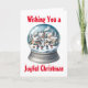 Cette carte de Noël personnalisable présente une boule à neige avec des personnes profitant de la neige.