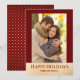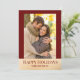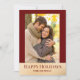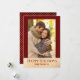 Envoyez votre amour avec style grâce à cette carte de vœux photo festive mettant en vedette une bordure rouge foncé, des accents de faux doré et un message « Joyeuses Fêtes » moderne en caractères serif. Le texte personnalisable sous la photo vous permet d'ajouter vos noms ou un court message, ce qui en fait un beau souvenir pour les amis et la famille. Le verso de la carte présente un fond rouge assorti avec des pois dorés pour un supplément de touche festive. Parfait pour les couples, les familles ou les jeunes mariés qui partagent la joie des fêtes.
