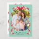 Cette carte de Noël photo fantaisiste présente une image courbée, élégamment décorée d'un charmant arc rouge et d'un arrière - plan vert clair ruban. Le dos offre de l'espace pour une deuxième photo et un texte personnalisé, vous permettant d'ajouter votre propre message personnel.