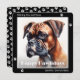 Beautiful Boxer dog holiday card featuring a watercolor illustration of Boxer on the front and a paw prints pattern at the back. Easily personalize this black holiday card with your text, add your own image, or change the background to any color as desired.