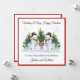 Cette carte de Noël convient aux jumeaux lors de leur premier, deuxième ou troisième Noël. Le design comprend un contour de frontière rouge, des flocons de neige bleu clair, des arbres de Noël aquarelle, des sucres de canne, des cadeaux et des bonhommes de neige jumeaux.
