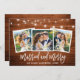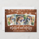 Rustic Wood Brush Script 3 Photo Mariage marié et Joyeuse carte de Noël avec lumières à cordes