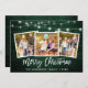Brosse Rustique en bois vert Script 3 Photo Famille Joyeux Noël Carte avec lumières à cordes