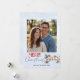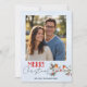 Branch with robin birds and berries Christmas photo holiday card. This charming Christmas card showcases a family photo and a fir branch with berries and redbreast robins on it. The background is of pale blue color. The phrase "Merry Christmas" combines script and decorative fonts.