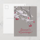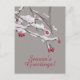 Belle carte postale hivernale élégante avec une illustration numérique de branches aux baies rouges recouvertes de neige moelleuse sur un arrière - plan gris clair et le texte personnalisable "Bonnes Fêtes!".
