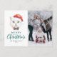 Joyeux Noël! Envoyez des voeux de Noël à votre famille et à vos amis avec une carte postale de Noël sur le thème du chat. Il présente une illustration aquarelle d'un mignon chat à air court britannique blanc avec chapeau de Père Noël et cravate arc tartan. Personnalisez en ajoutant une photo, un nom et d'autres détails. Cette carte postale photo de Noël pour chat est parfaite pour les amoureux de les chats et les propriétaires d'animaux de compagnie.