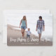 Envoyez des voeux joyeux et partagez deux de vos photos préférées avec une carte de vacances photo personnalisée unique. Tout le texte sur ce modèle est simple à personnaliser pour inclure n'importe quel libellé, comme Joyeux Noël, Joyeux Fêtes, Joyeuses Fêtes, Jour de l'An.. (CONSEIL EN MATIÈRE DE PLACEMENT DE L'IMAGE : Une façon simple de centrer une photo exactement comment vous voulez est de la rogner avant de la télécharger sur le site Zazzle.) Le design moderne minimaliste noir et blanc présente une typographie manuscrite tendance superposée et 2 images de votre choix. Famille et amis adoreront présenter cette carte élégante customisée. Joyeux Noël et Bonne Année !