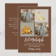 Share your cherished holiday memories with this elegant 2-photo grid Eid Mubarak greeting card. Set against a warm, sophisticated chocolate brown background, this design features two slots for your favorite family portraits alongside beautiful gold-themed Islamic illustrations, including a crescent moon, lanterns, and a festive mosque scene.