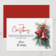 Célébrez la saison des Fêtes avec notre Pine Branches et Red Bells Custom Joyeux Noël Carte. Cette carte de charme présente un magnifique design de branches de pin luxuriantes ornées de cloches rouges vibrantes, qui capte l'essence du décor traditionnel de Noël. Personnalisez-le avec un nom ou un message personnalisé pour ajouter une touche spéciale, ce qui le rend parfait pour envoyer des voeux chaleureux à la famille et aux amis pendant cette saison festive. Présente un arrangement délicieux de branches de pin et de cloches rouges, créant une esthétique festive et joyeuse. Personnalisez avec un nom ou un message personnalisé pour un accueil de vacances unique et chaleureux. Imprimé sur un stock de carte de haute qualité pour un look et une sensation premium. Idéal pour partager de sincères voeux de Joyeux Noël avec des êtres chers. Un design intemporel qui évoque la magie et la chaleur de la période des fêtes. Partagez la beauté de Noël avec une touche personnelle - commandez vos branches de pin et vos cloches rouges Custom Joyeux Noël Carte aujourd'hui et diffusez la joie festive cette saison!