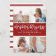 Carte de Noël rouge et blanc avec quatre de vos photos dans un collage moderne et propre avec des photos carrés. Bénédiction de Noël écrite dans une police charmante. Le dos est recouvert de rayures prédatrices en rouge et blanc.