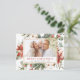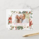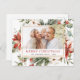 Budget Rustique hiver Joyeux Carte photo de Noël avec Fleurs Blanches Florales de Vacances, Vert et Fleurs Poinsettia Rouge avec un Arrière - plan simple.