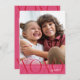 Budget Pink Modern XOXO Photo Valentine's Day Holiday Card avec X et O rose et rouge et un nom de signature de script. Le dos a une deuxième photo avec de la place pour votre message.