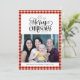 Buffle Rouge Blanc Moderne Plaid Script Simple Carte De Vacances. Envoyez des voeux et des salutations chaleureux à vos proches avec cette carte de vacances simple, minimaliste, mignonne et jolie avec "Joyeux Noël" en typographie élégante. Reverse pour révéler un bel arrière - plan motif rouge blanc plaid classique. Souhaitez-vous à tous un Joyeux Noël et Bonne Année!