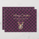 Elégante carte de Noël Joyeux violet et or avec une silhouette de rennes d'or et une vignette de neige. Une fausse feuille d'or calligraphie salutation ajoute un look plus festif à cette carte de vacances. Personnalisez facilement cette carte de vacances violette simple mais élégante avec votre nom de famille et votre texte. L'effet de feuille d'or n'est simulé que dans l'illustration.