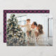 Cartes de Noël en noir et violet personnalisées avec titre en écriture sur le devant et motif en plaid noir et violet à l'arrière. Personnalisez facilement ces cartes de Noël avec votre image et un nom de famille.