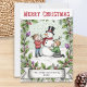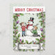 Celebrate the joy of winter and family togetherness with this personalized Christmas card featuring a charming snowman scene. Two children build a cheerful snowman surrounded by festive holly, red berries, and winter foliage, capturing the warmth and nostalgia of traditional Christmas celebrations. The design is framed with vintage-inspired botanical details and a soft green and white chevron background for a timeless look that appeals to both modern and classic tastes. This customizable greeting card is ideal for all who love whimsical Christmas art, retro holiday style or nostalgic winter illustrations.Click 'Personalize' to edit the banner at the bottom with your family name and the year, as the finishing touch.