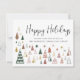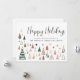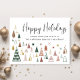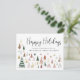 Carte de vacances moderne minimale pour votre entreprise avec des illustrations rétro abstraites de arbres et étoiles de Noël vert, terre cuite et or, "Happy Holidays" dans un script élégant et votre salutation et nom d'entreprise dans une simple typographie. Au verso, entrez l'adresse de votre site Web pour créer un code QR numérisable.
