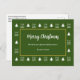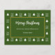 L'avant de cette carte postale de vacances est vert forêt. Il est doté d'un motif fait d'arbres de Noël et d'une image. Vous pouvez remplacer l'image d'affichage par le logo de votre entreprise. L'arrière contient trois lignes de texte d'affichage noir que vous pouvez modifier pour afficher votre adresse de retour.
