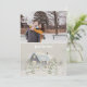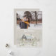 Votre photographie personnalisée est en haut, avec un texte personnalisé. En dessous, vous verrez une jolie scène de forêt enneigée. Ce design fantaisiste montre une cabane rustique, un pavillon ou une maison, dans une forêt enneigée avec des arbres tout autour. La maison est d'un bleu-gris foncé avec des lumières jaune doré qui brillent dans les fenêtres et de la neige sur le toit. Une clôture en bois émergeant du sol enneigé, des arbres enneigés l'entourent. Un effet de paillettes factices a été ajouté par-dessus cette scène forestière magique, pour lui donner l'air de scintiller et de briller. Veuillez noter qu'aucune paillette réelle n'est utilisée. Toutes les paillettes factices sont réalisées numériquement dans l'œuvre d'art. Le solstice d'hiver est arrivé et ce design vous