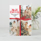 Envoyez des voeux de vacances chaleureux avec cette carte de vacances de Noël de collage photo de famille élégante avec un design moderne enveloppé de cadeau avec ruban rouge et arc festif, typographie "Joyeux Noël" audacieuse, et espace pour vos photos et noms de famille personnalisés. Parfait pour partager l'amour, la joie et la joie festive cette saison, cette carte de voeux de vacances élégante allie design moderne et esprit traditionnel de Noël, ce qui en fait un choix intemporel pour la correspondance de vacances en famille.
