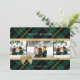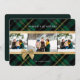 Souhaitez à vos amis et à votre famille des vacances heureuses avec notre élégant et festif motif en faux tissu de buffle vert multicolore plaid. Cette carte est conçue pour ressembler à un cadeau de Noël. Nous avons décoré la carte avec un joli arc et un ruban en or. Trois photos pour afficher votre photo de famille spéciale. Personnalisez-vous avec un accueil de vacances et une signature familiale. Conception de plaid créée par Moodthology Papery.