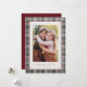 Un motif traditionnel noir et rouge houndstooth encadre une seule photo verticale sur cette carte de vacances classique. Le type simple permet d'avoir de la place pour un accueil personnalisé ("Joyeux Noël" peut être changé en "Joyeux Vacances" ou tout ce que vous voulez), le nom de famille et l'année. Le dos est muni d'un rouge marron coordonné et d'un motif de pied de plus foncé. Cette carte de vacances en famille est le moyen idéal pour envoyer de l'acclamation à des amis et à la famille.