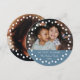 Cette carte photo élégante et moderne fait double emploi avec un ornement pour sapin de Noël ! Il suffit de percer un trou dans le cercle supérieur du motif. Ensuite, passez un ruban dans le trou et faites une boucle ! Le bloc de couleur en bas peut être personnalisé avec la couleur de votre choix (ici en bleu poussiéreux) ! Le verso de la carte contient un autre modèle de photo (fond perdu), avec une superposition de cadre à motif de points blancs assortis. Veuillez me contacter (Tracey) à l'adresse orabellaprints@outlook.com pour toute demande de renseignements sur le design ou le produit.