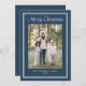 Partagez des salutations chaleureuses avec cette carte de vacances photo avec un riche arrière - plan de la marine et un cadre traditionnel double frontière blanche. "Joyeux Noël" est affiché en lettres blanches coordonnées au-dessus de votre photo de famille, avec votre nom de famille et l'année imprimée ci-dessous. Le design classique marine et blanc offre un look élégant et intemporel, parfait pour envoyer des voeux de Noël chaleureux à des amis et à la famille. Le dos comprend une photo de carré avec espace pour votre message personnalisé, complétant cette carte de vacances sophistiquée.
