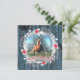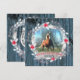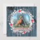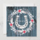 Carte de Noël personnalisée avec photo de cheval avec la photo de votre cheval dans un cadre en bois bleu usé, éléments argentés, couronne de Noël et fer à cheval argenté au dos.