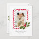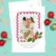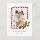 Style décontracté avec une touche moderne, cette carte de Noël à une photo met en valeur la meilleure photo de votre famille de l'année dans un joli cadre rouge à festons orné d'une illustration d'une branche de houx verte avec des baies rouges assorties et des fleurs blanches crémeuses délicates. La texture et l'illustration manuelle ajoutent une touche de fantaisie et une élégance artisanale. Les polices de caractères manuscrites accessibles gardent le ton décontracté et facilitent l'édition du texte au verso, ce qui permet un message plus long ou une mise à jour familiale tout en restant l'option la plus économique en tant que carte postale.