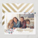Cette carte fantaisie et festive de 6 photos de vacances comprend un collage photo, des fraises d'hiver et dit "happy holiday" en fausse feuille d'or imprimé plat.