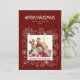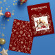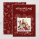 Cette carte de vacances simple mais élégante avec cadre photo de famille 1 en rouge foncé présente des illustrations d'art linéaire d'une fleur de poinsettia, de houx et de baies, de flocons de neige, de canne de bonbon, de cloches, d'étoiles, de biscuits au gingembre et bien plus encore. Le verso du design présente un motif avec les mêmes illustrations. Vous pouvez modifier tout le texte et ajouter votre propre photo. Voir toute la collection assortie.