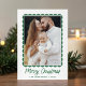 Célébrez la saison avec ce Carte photo de vacances à cadre vert moderne. Le design affiche votre photo dans un cadre écossais vert aquarelle sur un arrière - plan blanc, avec "Joyeux Noël" représenté dans un script manuscrit et votre nom et votre année imprimés en dessous. L'envers comprend l'espace pour une photo horizontale et un message, mélangeant une palette de vacances vertes fraîches avec un style moderne et gai.