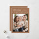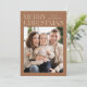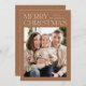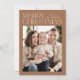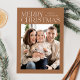 Carte photo moderne de Noël avec "Joyeux Noël" affichée en haut du design en lettres blanches tendance avec un arrière - plan brun-toffee. Personnalisez la simple carte de Noël avec votre nom de famille et votre photo. La carte inverse pour afficher un arrière - plan brun-toffee avec des points blancs subtils (neige).