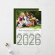 Calendrier de Noël 2026 avec photo Carte de vœux de vacances verte. Envoyez vos vœux de Noël 2025 ou de Nouvel An 2026 avec cette carte de vœux photo modifiable et un calendrier annuel 2026 que vos destinataires pourront utiliser toute l'année. Le design présente du texte et des couleurs modifiables (illustrés dans un texte manuscrit moderne en vert). Le message de vœux exemple dit NOUS VOUS SOUHAITONS UNE BELLE PÉRIODE DE FÊTES ET UNE BONNE ANNÉE. ASSISTANCE : Pour obtenir de l'aide sur la modification du design ou le transfert du design sur un autre produit, contactez le designer AVANT DE COMMANDER via l'onglet MESSAGE de discussion Zazzle ci-dessous ou envoyez un e-mail à makeitaboutyoustore@gmail.com.