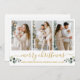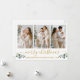 Script de calligraphie moderne Joyeux Noël 3 Photo Carte de vacances inclut des Feuilles d'Eucalyptus Aquarelle. Texte Or.