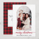Script de calligraphie moderne Joyeux Noël Famille Photo Arch Carte de vacances. Buffalo Rouge Plaid.