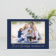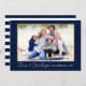Moderne minimaliste Élégance Calligraphie Stylo à encre Script manuscrit Mer & Voeux Photo Gold Frame Carte de vacances - Marine Bleu & Blanc