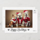 Voici notre carte de vœux "Calligraphy Happy Howlidays Funny Pet Dog Photo Holiday Card" - un mélange charmant de design moderne minimaliste et de charme chaleureux. Le recto de cette carte présente une image adorable qui capture l'esprit de Noël, avec trois chiens habillés en tenue de fête. Sous l'image, vous trouverez la calligraphie élégante qui dit "Happy Howlidays", avec un motif d'empreinte de patte pour ajouter une touche supplémentaire pour les amis des animaux. Dans le coin supérieur droit, personnalisez la carte avec votre signature de famille, et sur le bord inférieur droit, l'année est notée avec soin. En retournant la carte, un beau message de "Joyeux Noël" orne la carte, rappelant à vos proches la chaleur et la joie de la saison. C'est une façon unique et chaleureuse d'envoyer vos vœux de Noël. Notre carte est parfaite pour les amoureux des chiens et pour quiconque apprécie la beauté simple et élégante de la saison. Partagez l'amour et les rires avec cette carte de vœux unique et inoubliable.